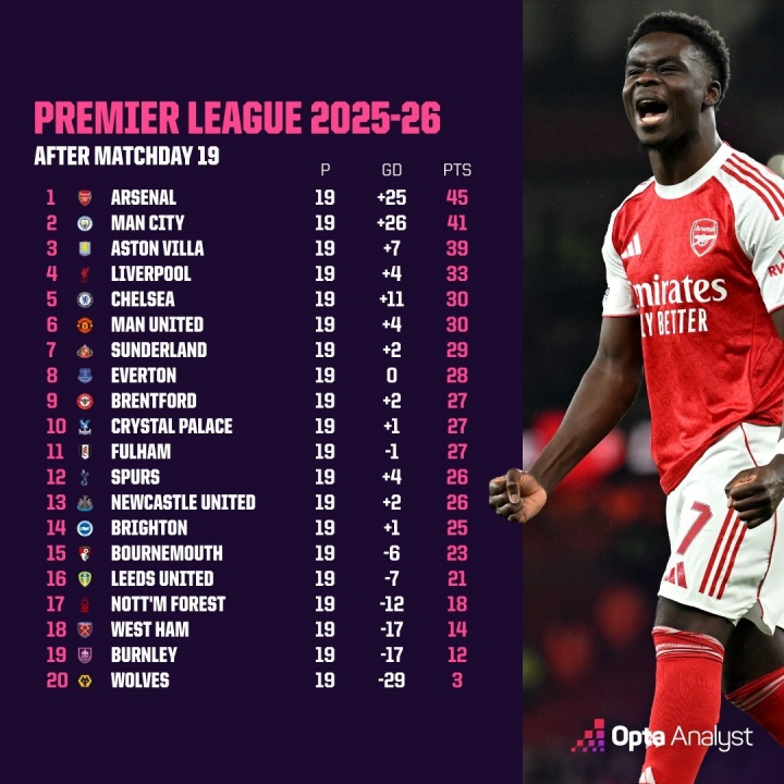一场天堂一场地狱英超赛季已经过半,第5到第14只差5分 【发布时间】:2026-01-03 08:30 【来源】:24直播网 01月02日讯 本赛季英超进行了19轮,赛季已经过半,积分榜上的竞争依旧非常激烈。第5名切尔西到第14名布莱顿之间的差距只有5分,一场球的输赢可能让原本中下游的球队冲向欧战竞争区,也可能让冲击前四的球队直接跌出前十。